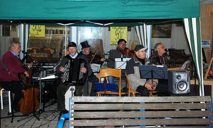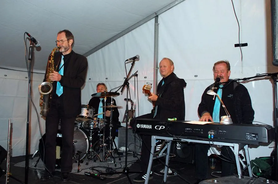 Et veloplagt Allan Steen Band i teltet på torvet.