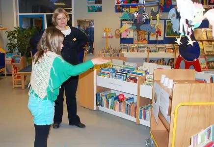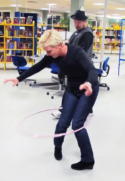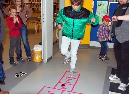 På børnebiblioteket kunne man også prøve at hinke i en hinkerude.