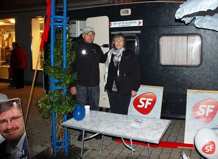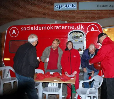 Der var også et par af de politiske partier, der benyttede Kulturnatten til at lave lidt reklame. Her er det socialdemokraterne med den flotte, røde campingvogn.