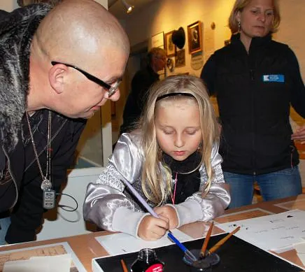 På museet kunne man også prøve at skrive med pen og blæk – nostalgisk for mange af de lidt ældre, og nyt og spændende for børn og unge.