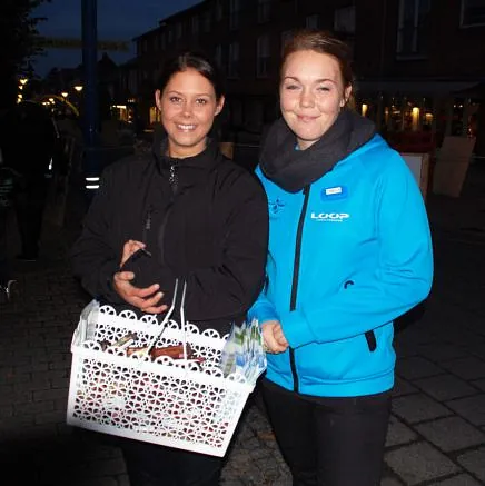 Camilla og Camilla deler slik og brochurer ud fra Loop cirkeltræning.