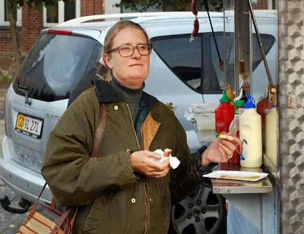 En af de første ved pølsevognen var sognepræsten fra Ulse, Anne Rydahl.