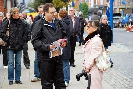 Både radio og tv var til stede på kulturnatten. Til venstre er det Jan-G fra Radio Østsjælland 104-7 med håndholdt mikrofon. Radioen sendte live hele aftenen.