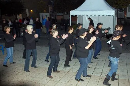 Haslev Linedance gav en festlig opvisning lige uden for biblioteket.