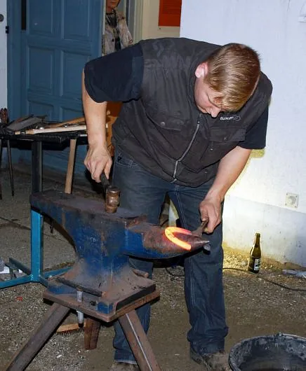Uden for Haslev Museum kunne man se en beslagssmed, som lavede hestesko.