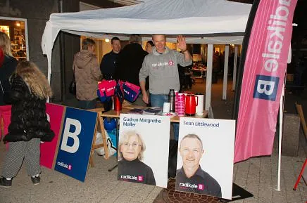 De politiske partier var mødt talstærkt op i anledning af det forestående kommunalvalg. Her vinker De Radikales spidskandidat, Sean Littlewood, til fotografen.