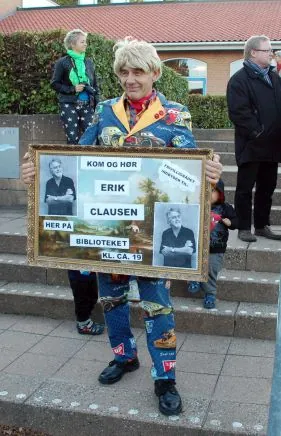 Frivilligrådet gjorde reklame for deres arrangement på biblioteket med Erik Clausen, der fortalte om sportsgrenen, Hjernegymnastik.