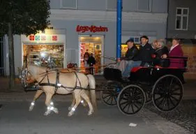Efterhånden som det blev mørkere lyste hestevognens hestes "ankelsokker" op i Kulturnatten.