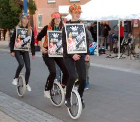 Haslev Uni Cykel Klub gav opvisning, men derudover stødte man jævnligt i gadebilledet på disse søde unicyklister, der reklamerede for Haslev Festspil.