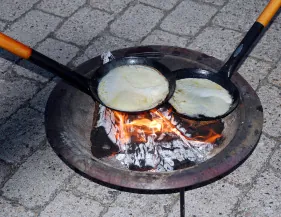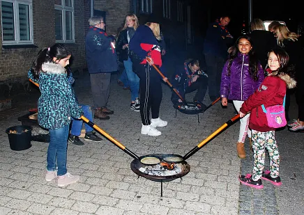Hos de blå spejdere kunne børnene få lov at bage pandekager over bål. Det var meget populært.