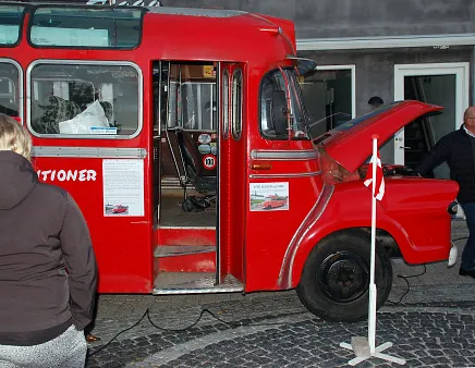 Støtteforeningen "Veteranbussen –Ud i det blå" serverede kaffe og småkager i den 60 år gamle bus (Bedford 1958).