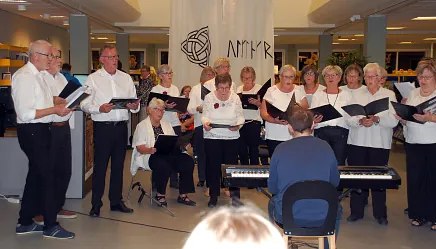 Her synger Haslevkoret, og i børnebiblioteket kunne børnene male runesten og lave vikingesmykker med mere.