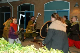 Bibliotekspersonalet havde gjort meget ud af aftenen, blandt andet var de alle iført mere eller mindre autentiske vikingekostumer.