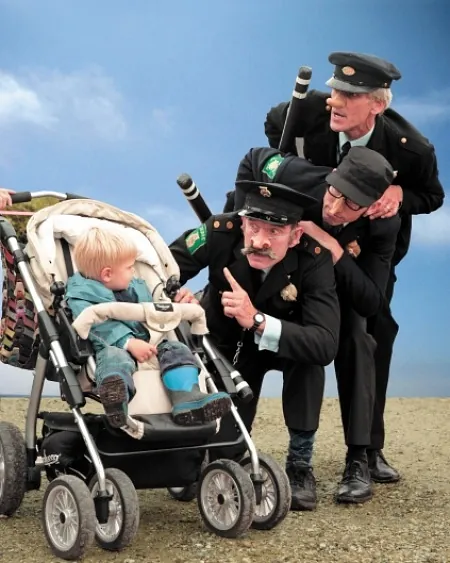 Haslev Kulturgruppe har inviteret ”De skøre strømere” til at underholde med gadeteater i Jernbanegade. Der er bl.a. ”patrulje”, ”udrykning” og - måske - en undveget fange!