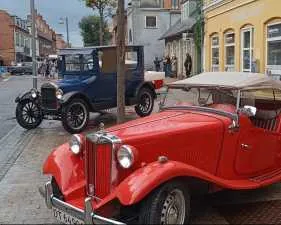 Se de fine veteranbiler, der holder fra Jernbanegade 27 og ned mod stationen
